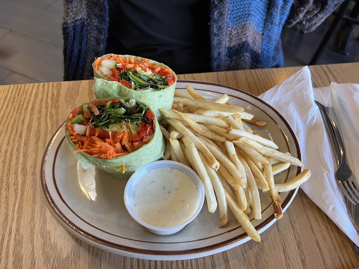 True diner atmosphere. 5 stars for my vegan bowl, cinnamon bun and croissant. First time here and didn’t know what to expect for a vegan bowl, but my goodness. It was a cross between a soup, chili consistency with toasted rye bread to dip in it. It made me feel warm inside as the temperature outside dropped with the freezing wind. Topped with tofu, red sauce and slices of avocado, it felt like a treat to have. The potatoes were cut and cooked perfectly. The spinach was perfect. Will have again, maybe even weekly. Can’t wait to try breakfast.